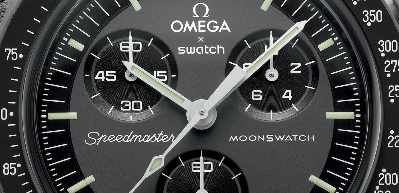 Com sua cor cinza escuro intenso e pulseira de VELCRO® cinza metálico, este relógio sem limitações é sinônimo de sucesso. O ponteiro de segundos do cronógrafo, os ponteiros do submostrador e a escala taquimétrica são brancos. Os submostradores e a luneta são pretos. Todos os mostradores da coleção ostentam a marca OMEGA X Swatch, o icônico logotipo Speedmaster e o logotipo MoonSwatch. A construção em vidro de origem biológica, o "S" gravado integrado no centro do vidro, o padrão circular fino e sofisticado no anel externo do mostrador e nos submostradores recuados, a construção angular e suave das asas, o icônico detalhe "ponto sobre 90" na escala taquimétrica e, claro, a exclusiva sensação de biocerâmica são comuns a todos os modelos. Os ponteiros de hora, minuto e segundos do cronógrafo, bem como os marcadores de hora, ostentam Super-LumiNova® para um brilho perfeito no escuro