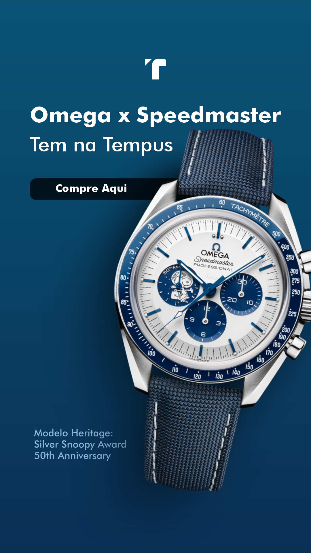 A lendária escala taquimétrica aparece em esmalte branco sobre uma luneta de cerâmica azul [ZrO2] e inclui uma homenagem à história do Speedmaster com um ponto sobre o número noventa. O esquema de cores continua no mostrador prateado com marcadores de hora em PVD azul e ponteiros angulares.