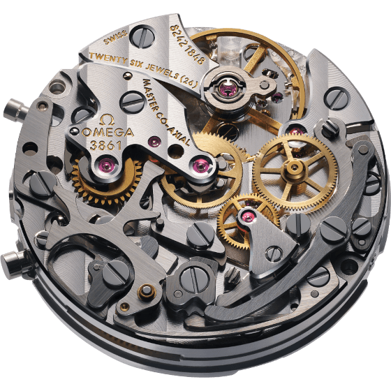 Um feito técnico, o Calibre 3861 tem a sua origem no primeiro relógio usado na Lua. Esta potência é o primeiro movimento Co-Axial Master Chronometer dentro de um Moonwatch, proporcionado uma reserva de marcha superior e um desempenho cronométrico e a resistência magnética de excelência.